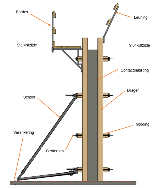 1.2.1 Schematische weergave traditionele bekisting, inclusief onderdelen