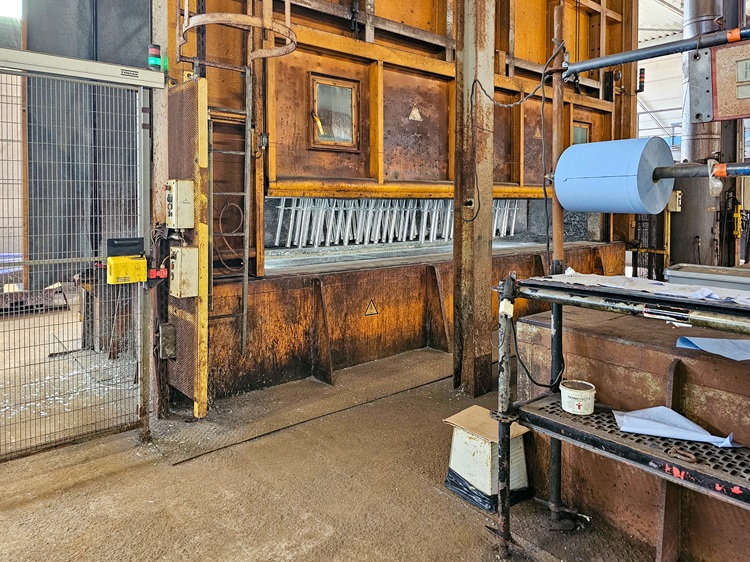 De laatste stap in het productieproces van staanders, liggers en diagonalen is het thermisch verzinken. Daartoe worden de onbehandelde onderdelen eerst gereinigd en voorzien van een oppervlaktebehandeling. Vervolgens worden ze ondergedompeld in een zinkbad (foto 5), bij een temperatuur van doorgaans 452 ºC.