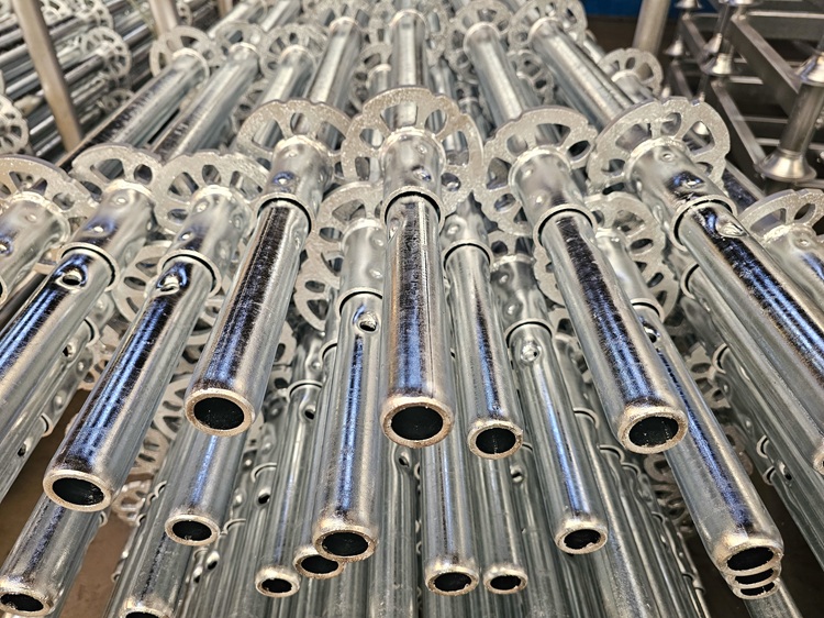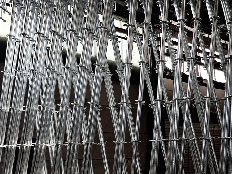 Het basismateriaal voor de staanders, liggers, diagonalen bestaat uit stalen buizen van zogenoemd zwart staal (onbehandeld koolstofstaal, foto 3. Andere elementen, zoals kopstukken, spieën en ringen, worden aangevoerd via de zuster-bedrijven.